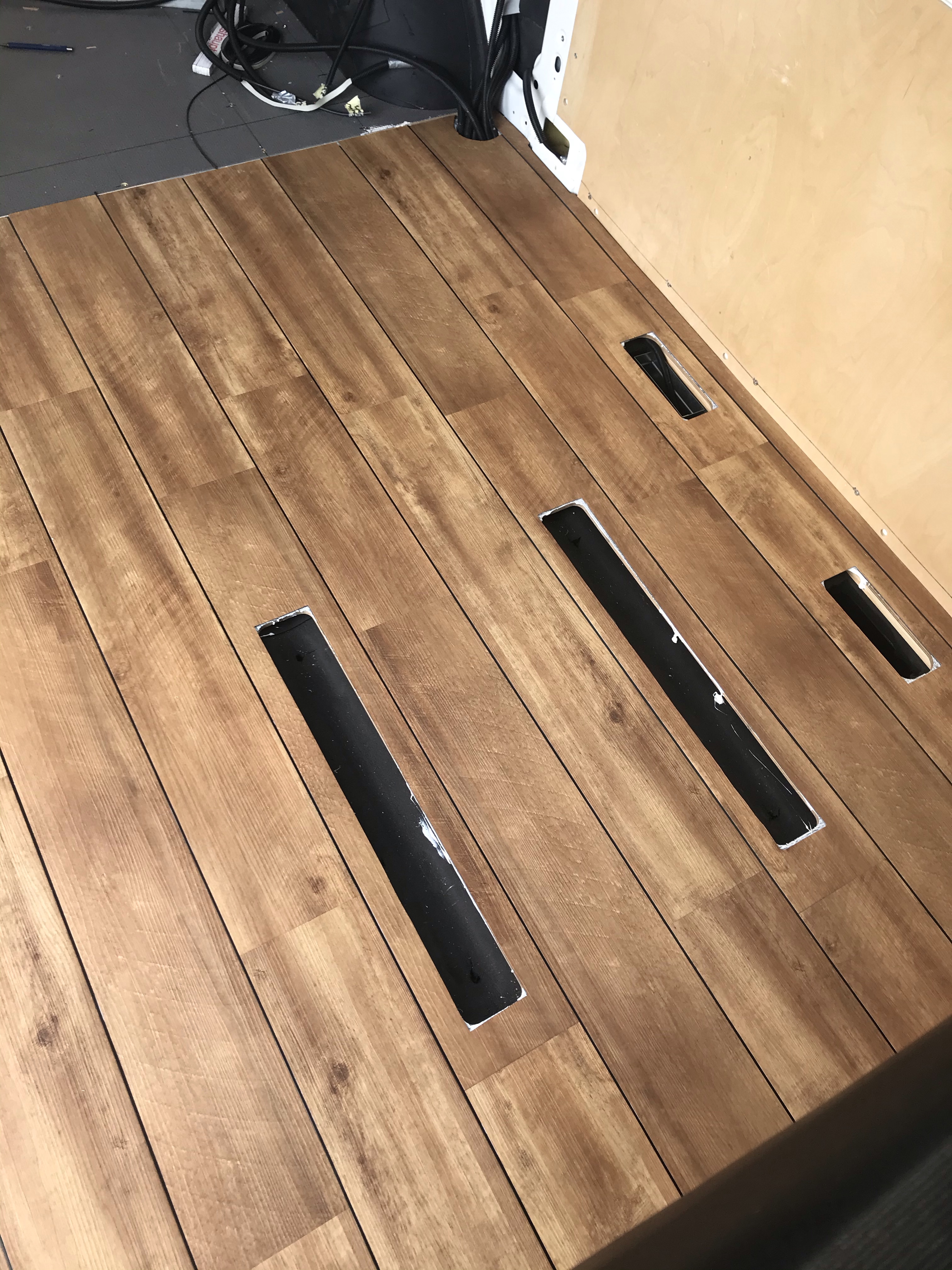 Den Boden haben wir im Schiffsbodenlook vollflächig verklebt. Als Unterkonstruktion haben wir die originale Bodenplatte wieder verwendet und in der Größe angepasst.